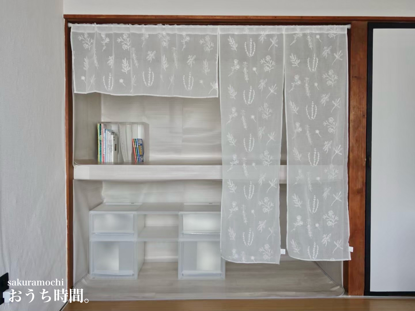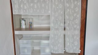 このカフェカーテンがあることで、押入れデスクが「より快適な空間になっている」と感じています。