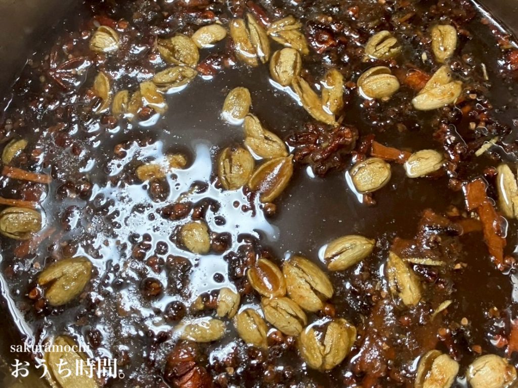 ※砂糖と水の分量以外は、前回作った残りの材料+使えそうな材料(八角、コリアンダー…etc)を鍋に投入しているので、aboutなところがあります。