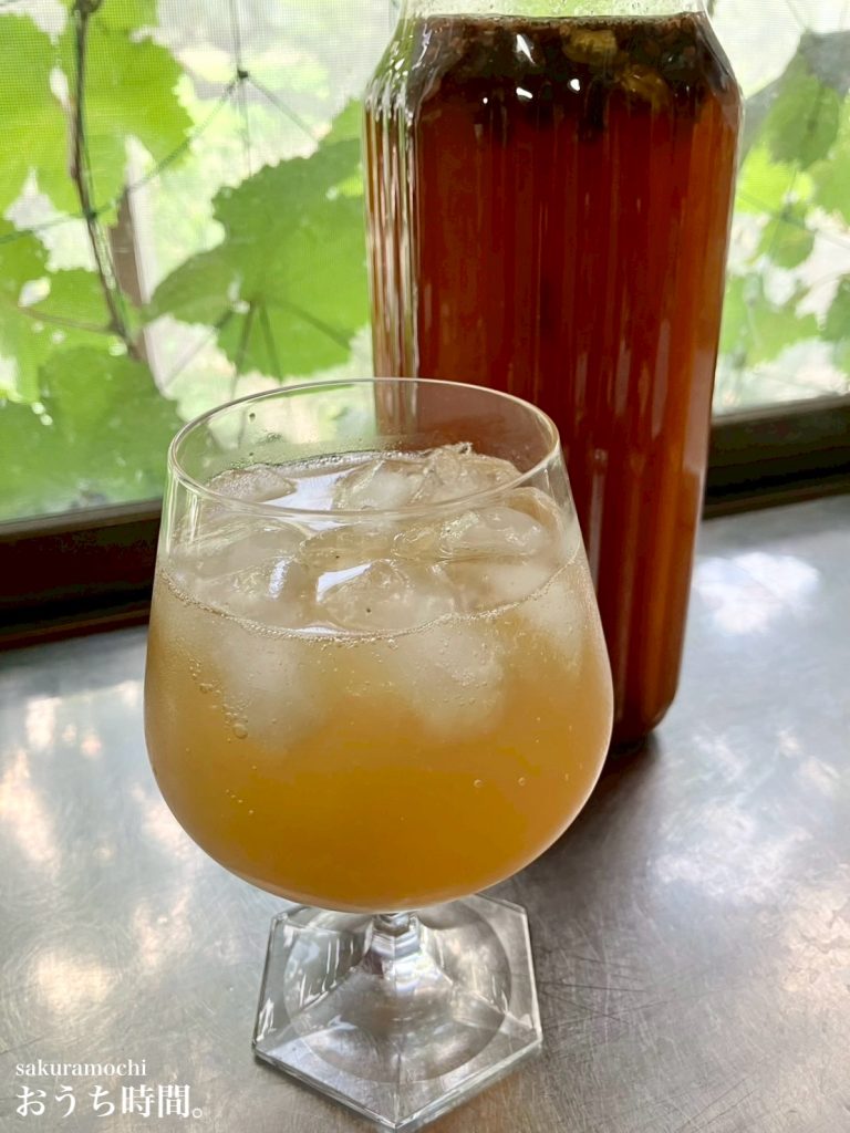 - 紫蘇ジュースのように、お好みで氷と炭酸で割って飲みます。